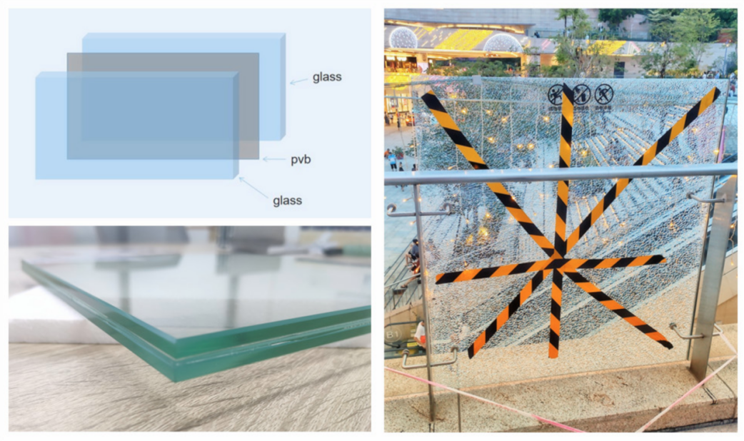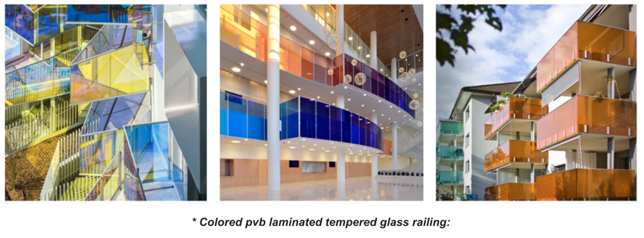 13.52mm clear laminated tempered glass balcony railing consists of two 6mm clear tempered glass panels together with 1.52mm PVB interlayer.